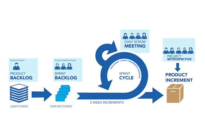 - Sprint Cycle: a fejlesztési periódus amikor az operatív csapat leszállítja (fejleszti és teszteli) a spring backlog-ot