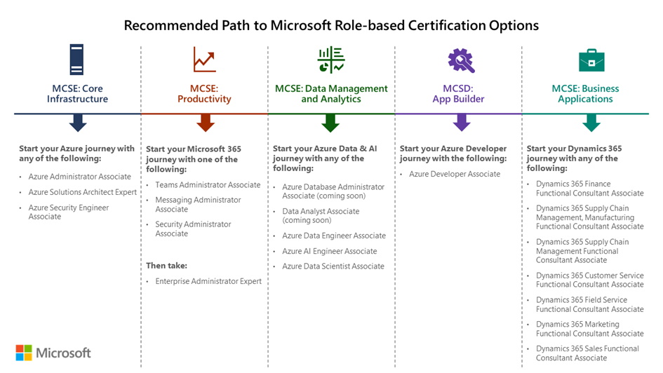 Tudta-e, hogy 2021-ben a „régi” Microsoft minősítéseket fokozatosan visszavonja a gyártó? Így, aki az elmúlt évek során a megszokott módon (termékkörhöz kötötten) kétévente újította meg minősítéseit, annak most jelentős változásokra kell felkészülnie! (Szerepkör alapú kurzusok és vizsgák.) Ehhez a felkészüléshez kívánunk Önöknek segítséget adni az alábbiakban a szerepkör alapú minősítések eléréséhez.